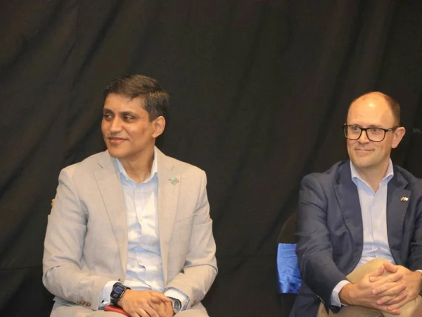 Mr. Shaheen Ali (left), Permanent Secretary to Fiji's Ministry of Trade, Co-operatives, SMEs and Communications and Mr. Andrew Shepherd, Australian Deputy High Commissioner to Fiji at the .Pacific Regional Digital Trade Workshop.